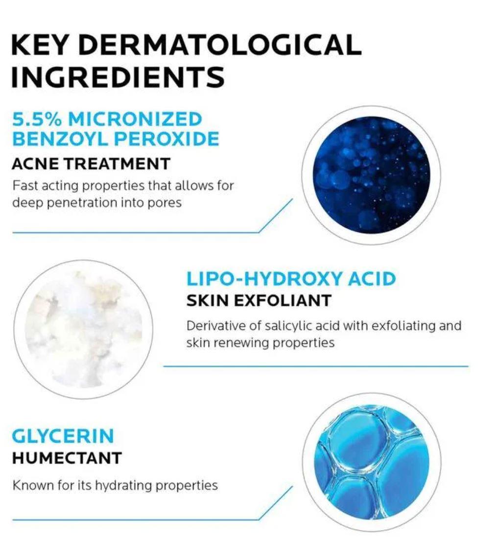 5.5% Benzoyl Peroxide: A common and effective acne ingredient with fast acting properties. Effaclar Duo uses micronized benzoyl peroxide; milled to a consistent small size that allows for deep penetration into the pores. An ideal choice for those concerned with red, raised acne blemishes and pimples.